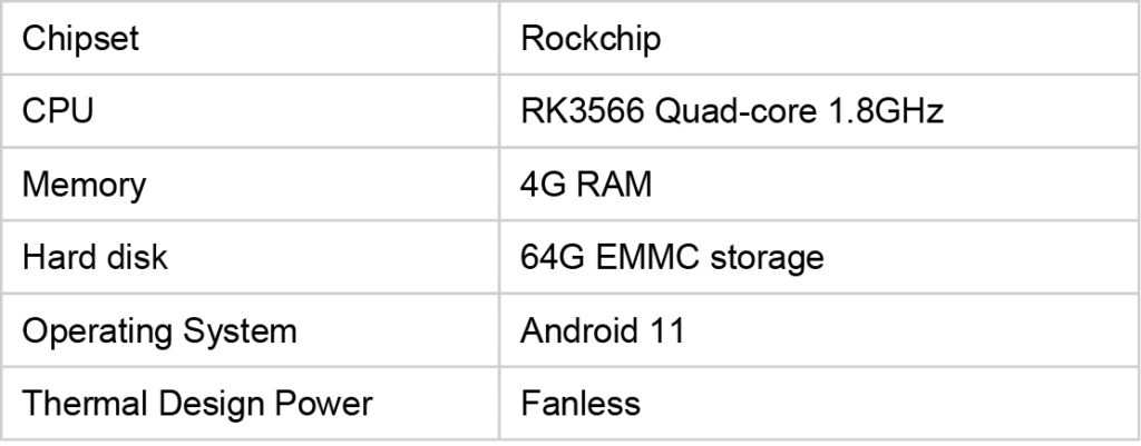 Opremljen Rockchip RK3566 Quad-core 1.8GHz procesorom, 4GB RAM-a i 64GB EMMC memorije za ultra-brzu obradu transakcija.